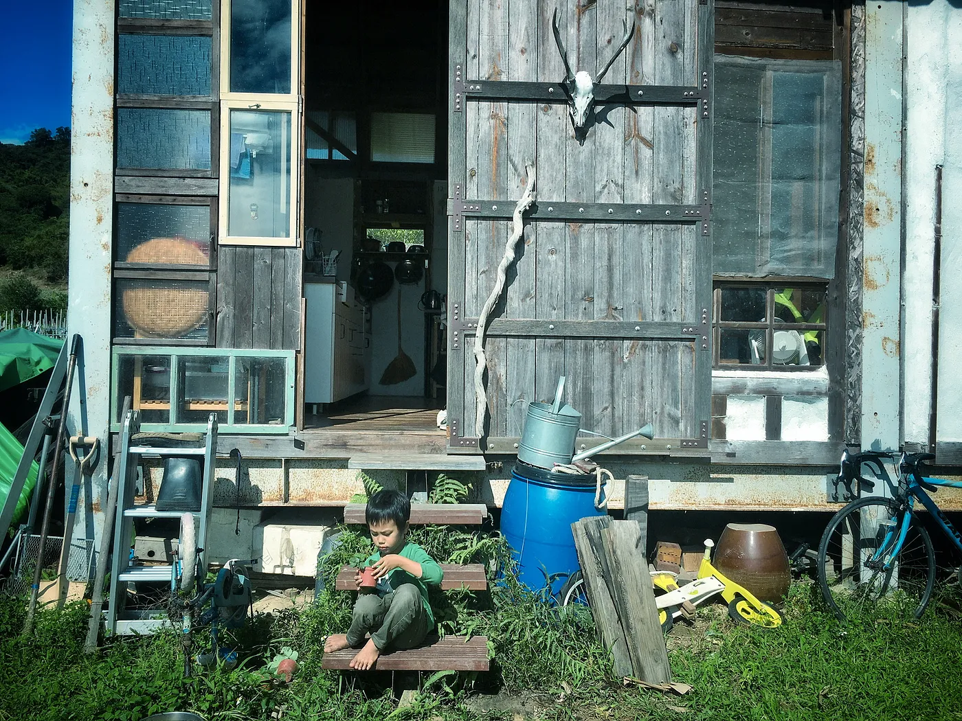 從城市到鄉下,大膽說生活環境有滿大的適應落差:「這裡是比較自然的地方,鄰居可能不是人;而是野生動物、昆蟲。」像是獨行蜂會找洞,在阿寬的樂高裡產卵、屋頂也有虎頭蜂、泥壺蜂,還有經常跑出來曬太陽的石龍子,以及螞蟻、蛾、獨角仙;如果沒有勤快除草,傍晚蚊子當差……每天都跟這些生物一起相處,笑稱已經是室友關係了,生活中就是阿寬的自然教室。「我現在還在克服的就是到處都是壁虎大便,活在自然裡,就會面對這些事情,我最近常在思考,我到底要追求乾淨到怎樣的程度?」有時吃飯時,從天花掉落下一粒壁虎大便,「真該慶幸沒有掉到我的碗裡嗎?這就是我們的生活,以前覺得很煩,現在覺得是一種自我修煉,就不會拿台北的標準來看待台東生活。」當有些事情無法改變,她改而放低標準,自然舒服很多。喜愛山、有登山經驗讓她適應不那麼都市化的生活,接納更原始一點的環境,周遭都是唾手可得的可食蔬果,只要認得便能盡情採摘,剛搬到鹿野時,她會帶著阿寬去採摘昭和菜、野莧、龍葵,有時她也會帶阿寬去區役場採摘水果,「這是生活在城市很難想像,不用花錢、透過採集就可以吃到這些食物。」