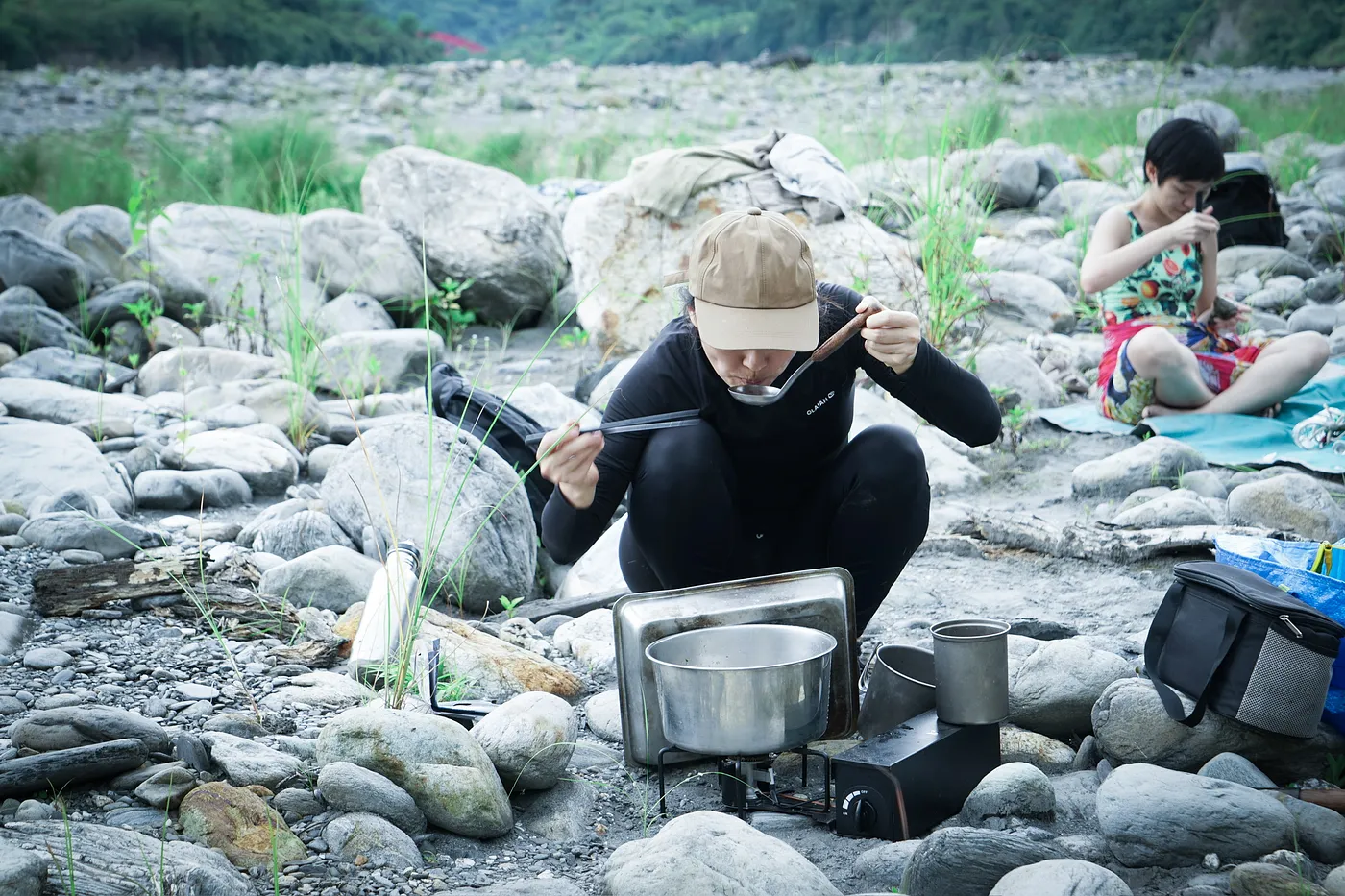 每次到台東鹿野,我們經常不做什麼行程安排,就跟著大膽柏宏的日常走。大膽說,夏天的台東逼人,只能跳進溪水裡玩水消暑,他們經常帶著午餐、啤酒、西瓜、鳳梨去溪邊野餐,近期柏宏也開始跟獵人學打魚,入夏後戴水鏡、用魚叉快狠準地補到溪魚。