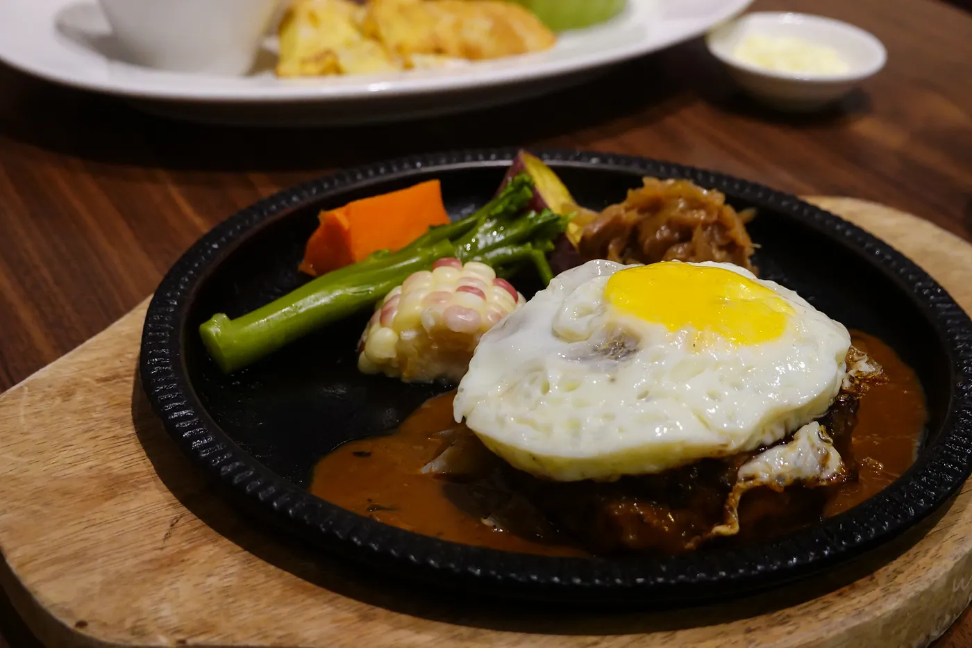 令人難以抗拒的的漢堡排,配上現烤的綜合小麵包,是士林中山北路日式洋食餐廳的招牌。攝影: 黃飛霖