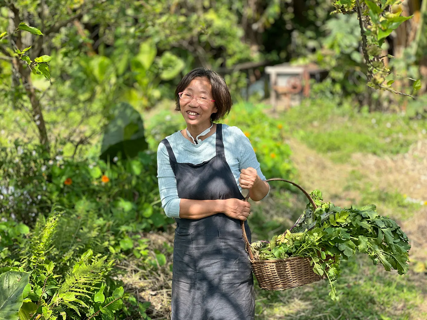 回到台灣後,她知道不捲起袖子自己種,就吃不到自然農法蔬果,便一頭栽進農務。幸運的是,她在田中偶遇了也有共同飲食信念的日僑醫師─黎旭瀛,兩人也從田埂旁,一路攜手走入了家庭。