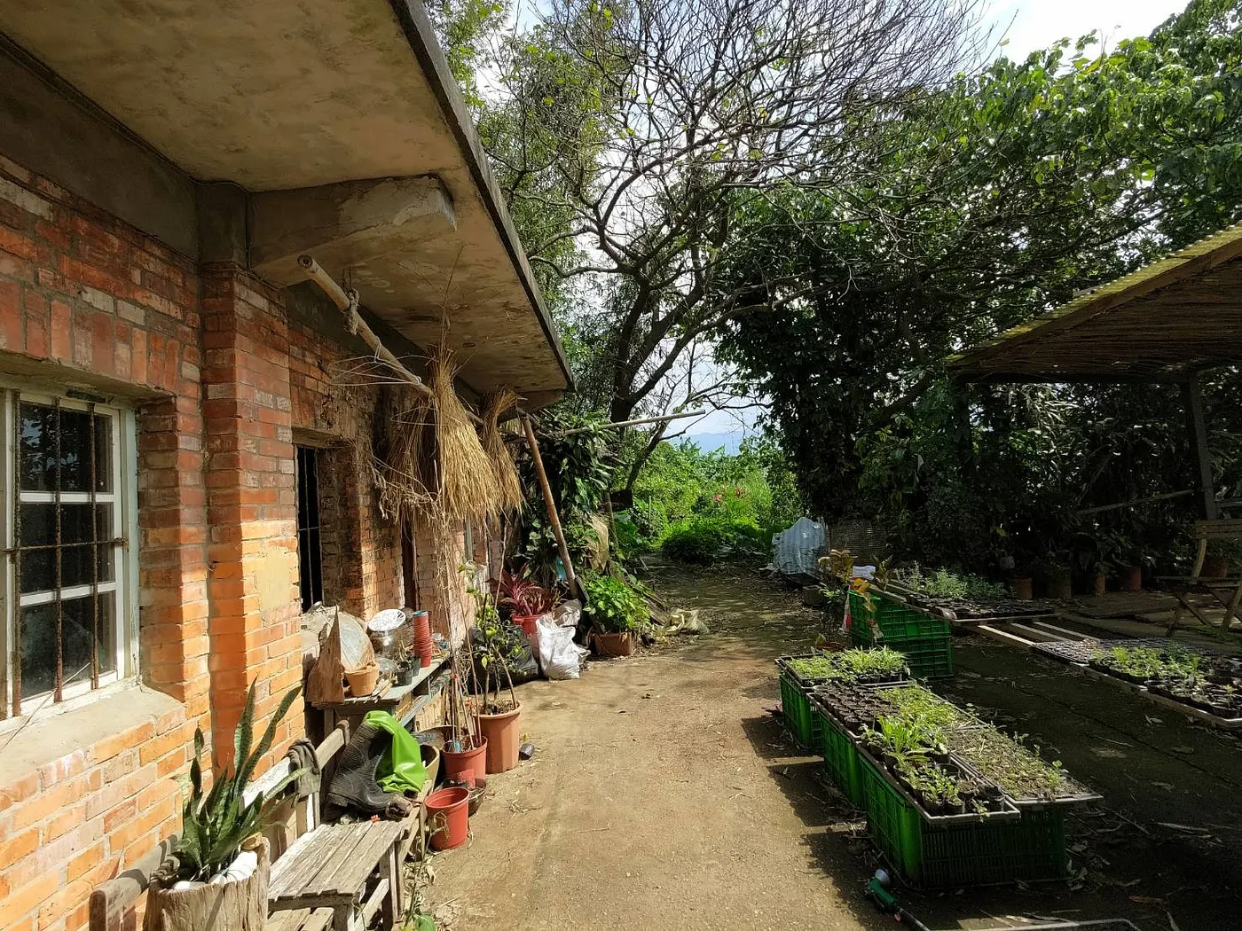 屋前育苗的露台、屋內的鋼架與牆面,都是善用廢建材重組搭建而成的。攝影:陳幸伶