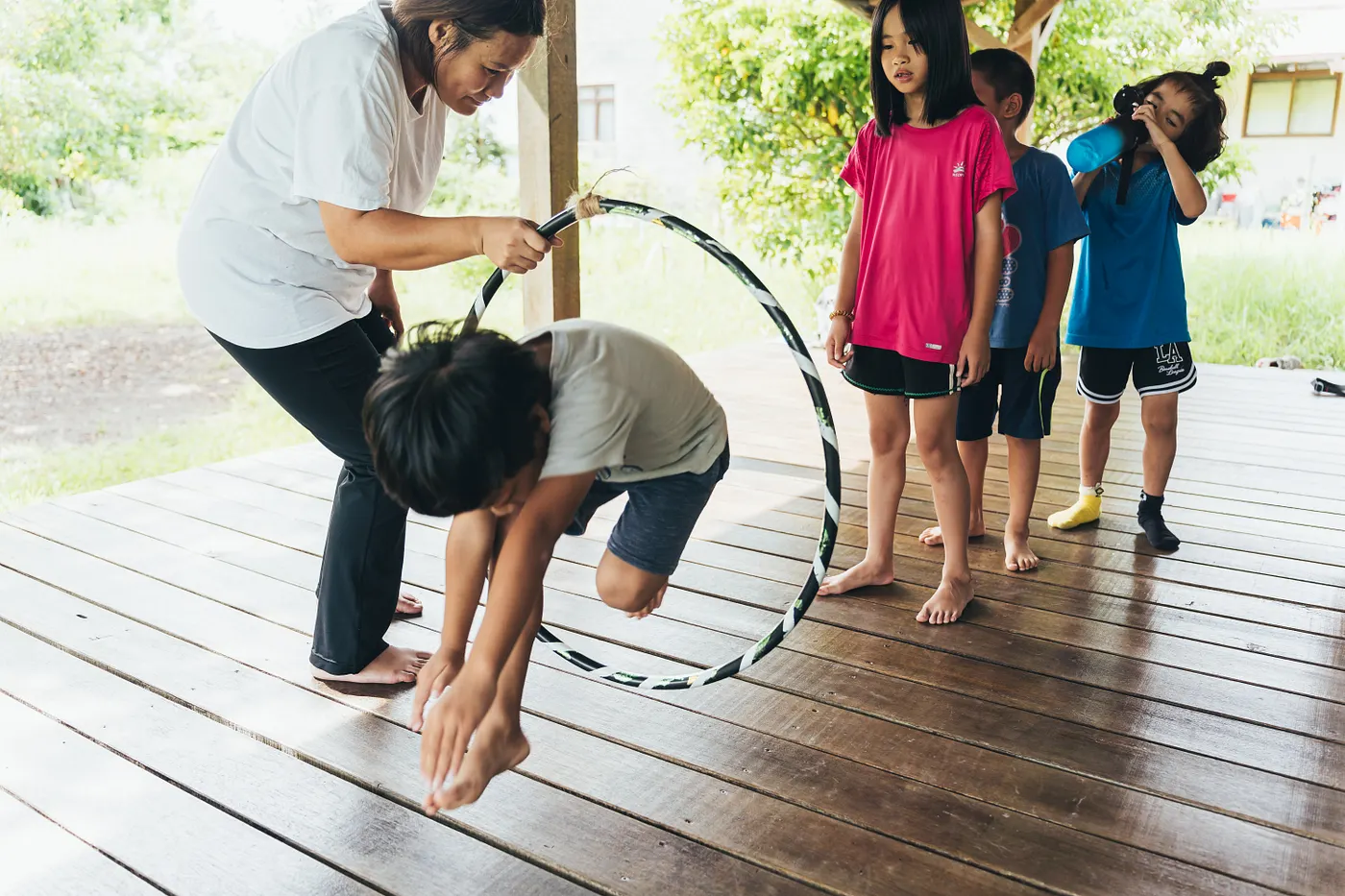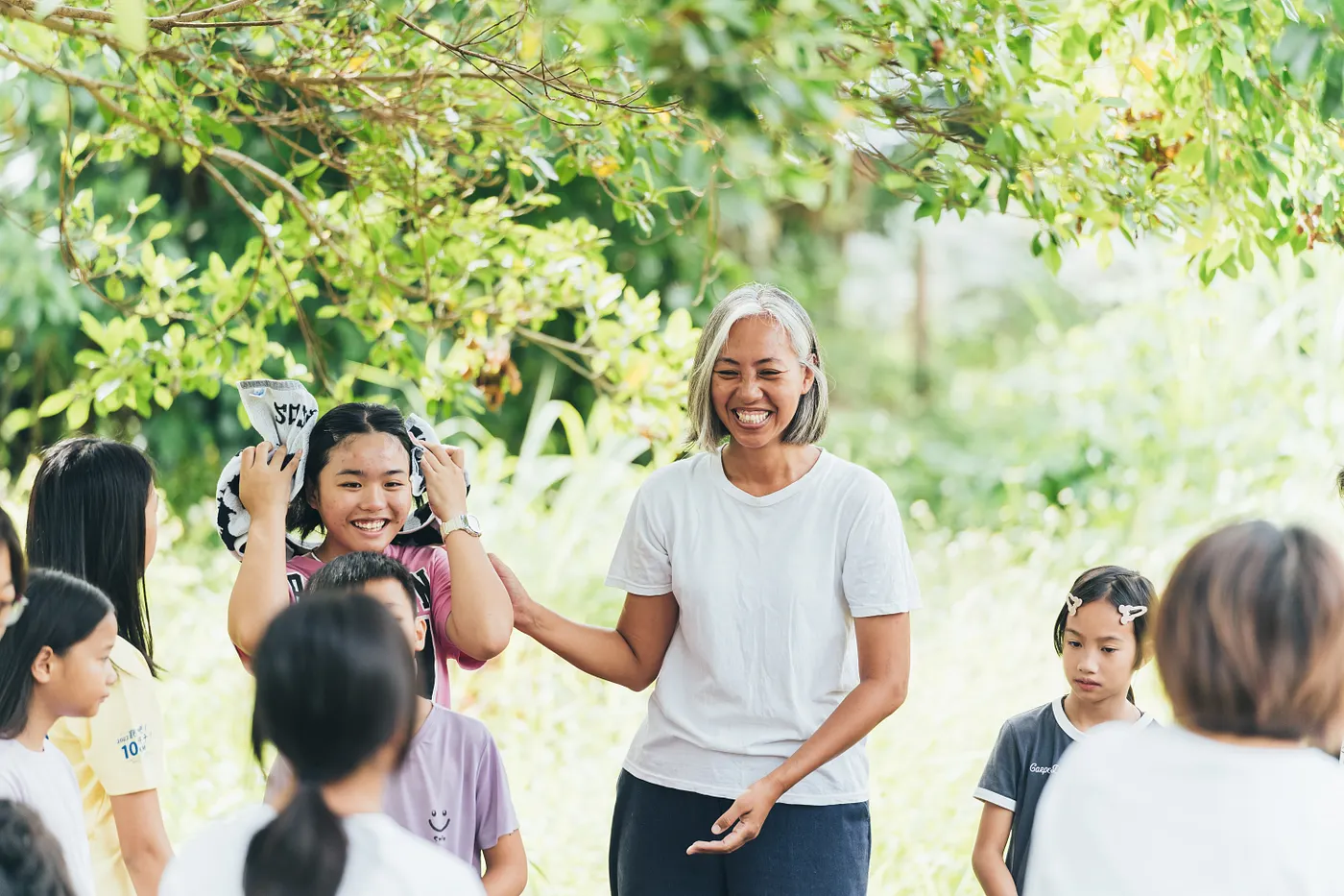 Tamorak共學園早晨第一件事:晨圈歌唱與禱詞,伸手擁抱四周的美麗。(攝影/李維尼)
