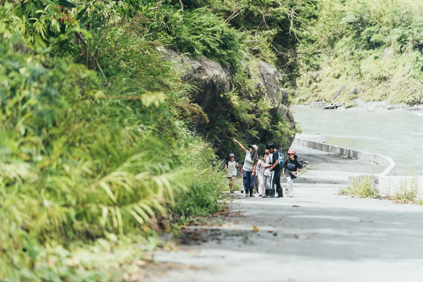 Panay與Atidong帶孩子們走在河邊道路上,認識植被與景物(攝影/李維尼),認識植被與景物(攝影/李維尼)