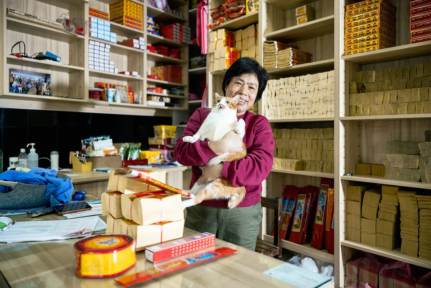 前有「一千塊」後有「咪醬」,毛孩們與木玉、秀英如影隨行,緊盯我們的一舉一動/攝影:定影影像工作室