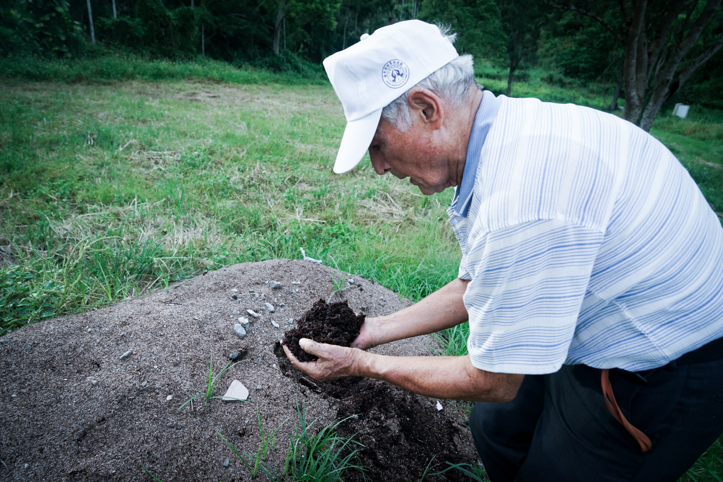 「法國的冬天很冷,在外面工作很辛苦,我們在爸爸、媽媽身上學到很多東西,特別是不怕吃苦。」神父看到有機肥、黑水虻都毫不猶豫地伸出雙手。(攝影/孫維利)