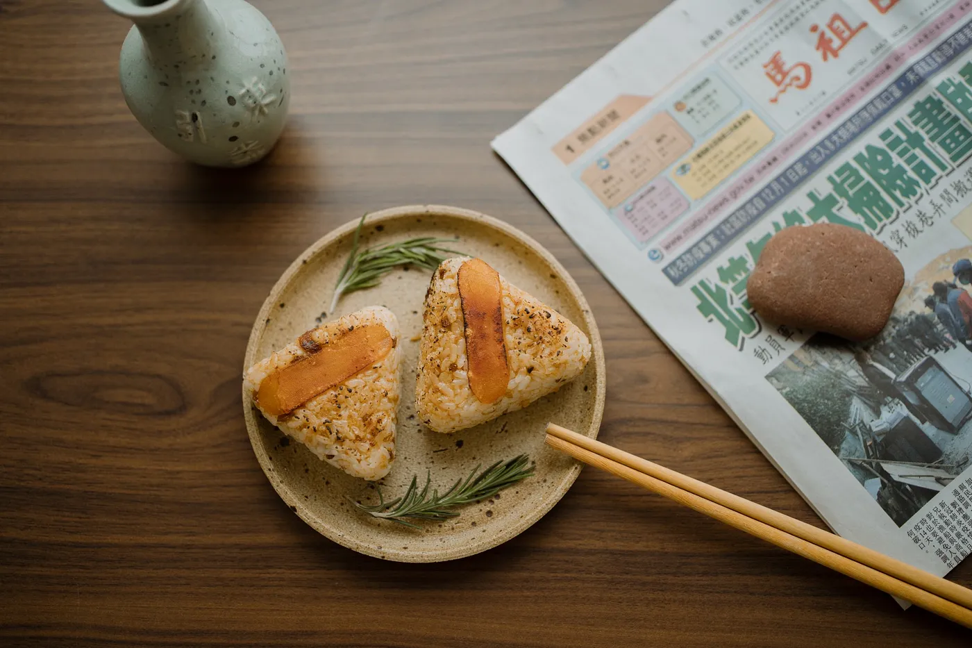 店內限量的預約菜單「烏魚子飯糰」,使用東引野生烏魚子來搭配飯糰,濃濃的海味與獨特東引味。圖片提供:鹹味島合作社(攝影:食癮,拾影)