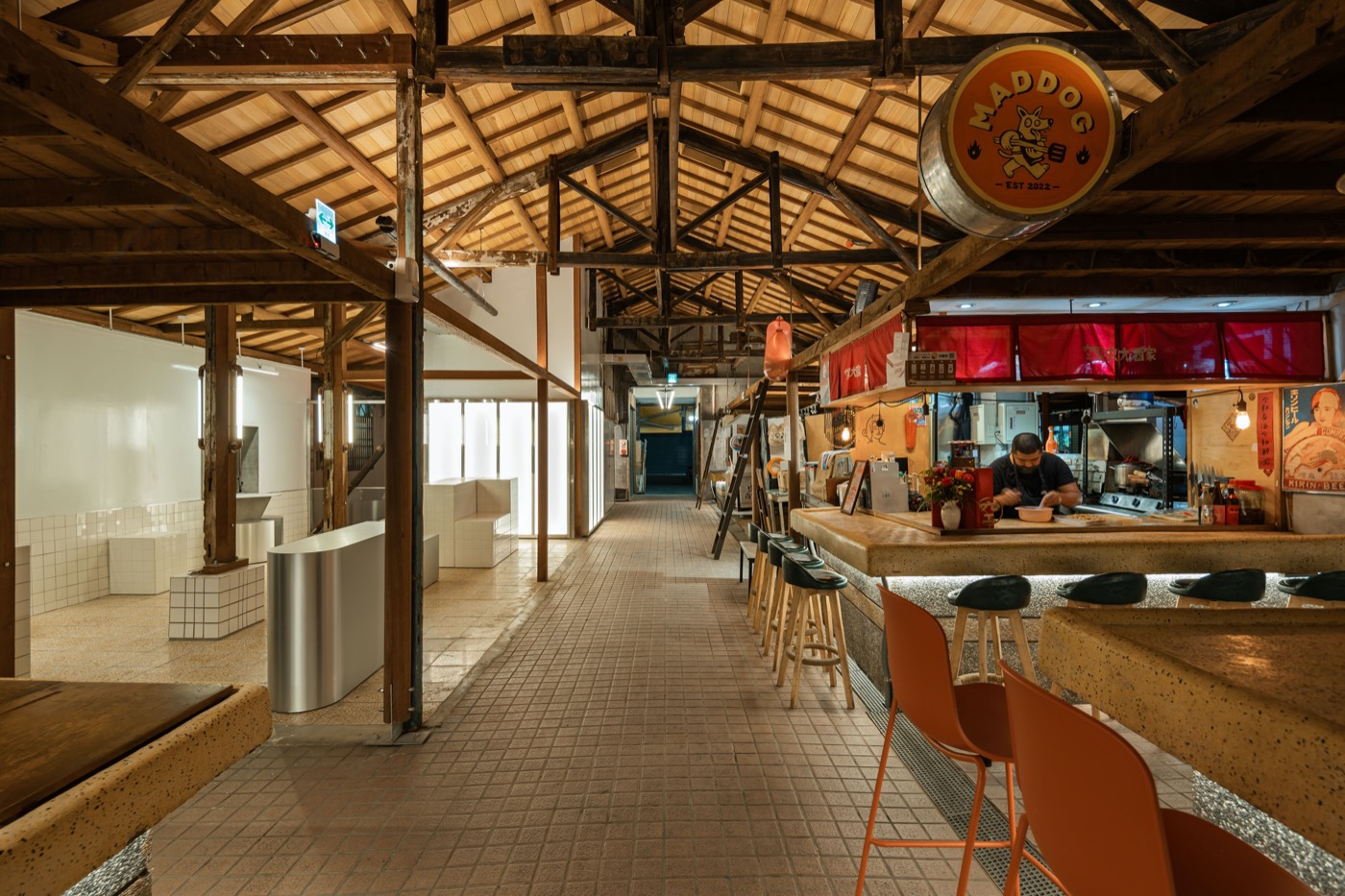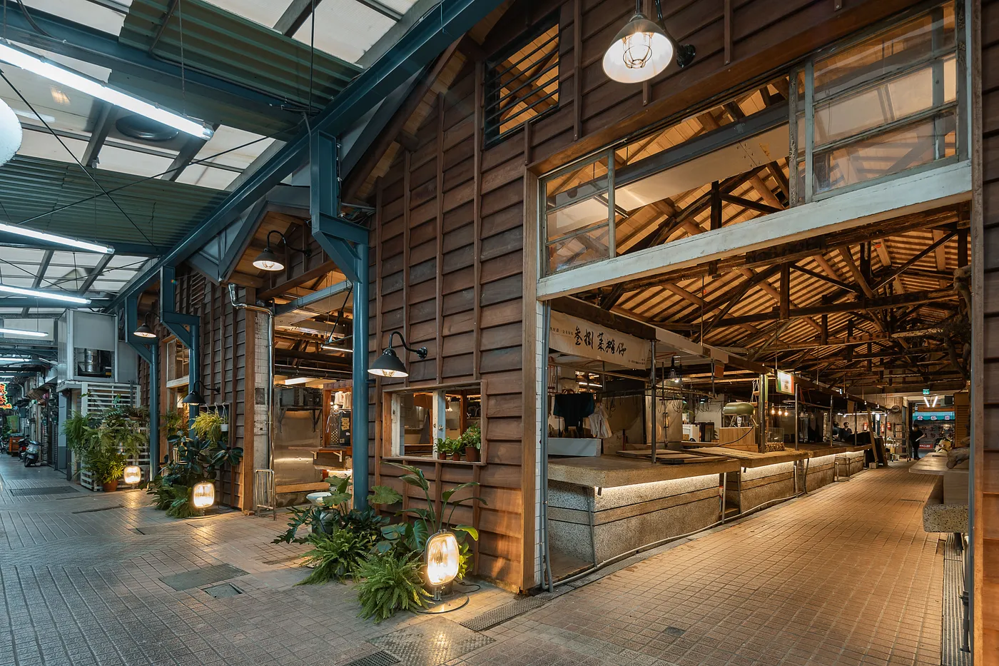 鹽一市場的木構造天花板被打開,成為繁華若夢的人生舞台背景。(照片提供/一起設計;攝影/林科呈)