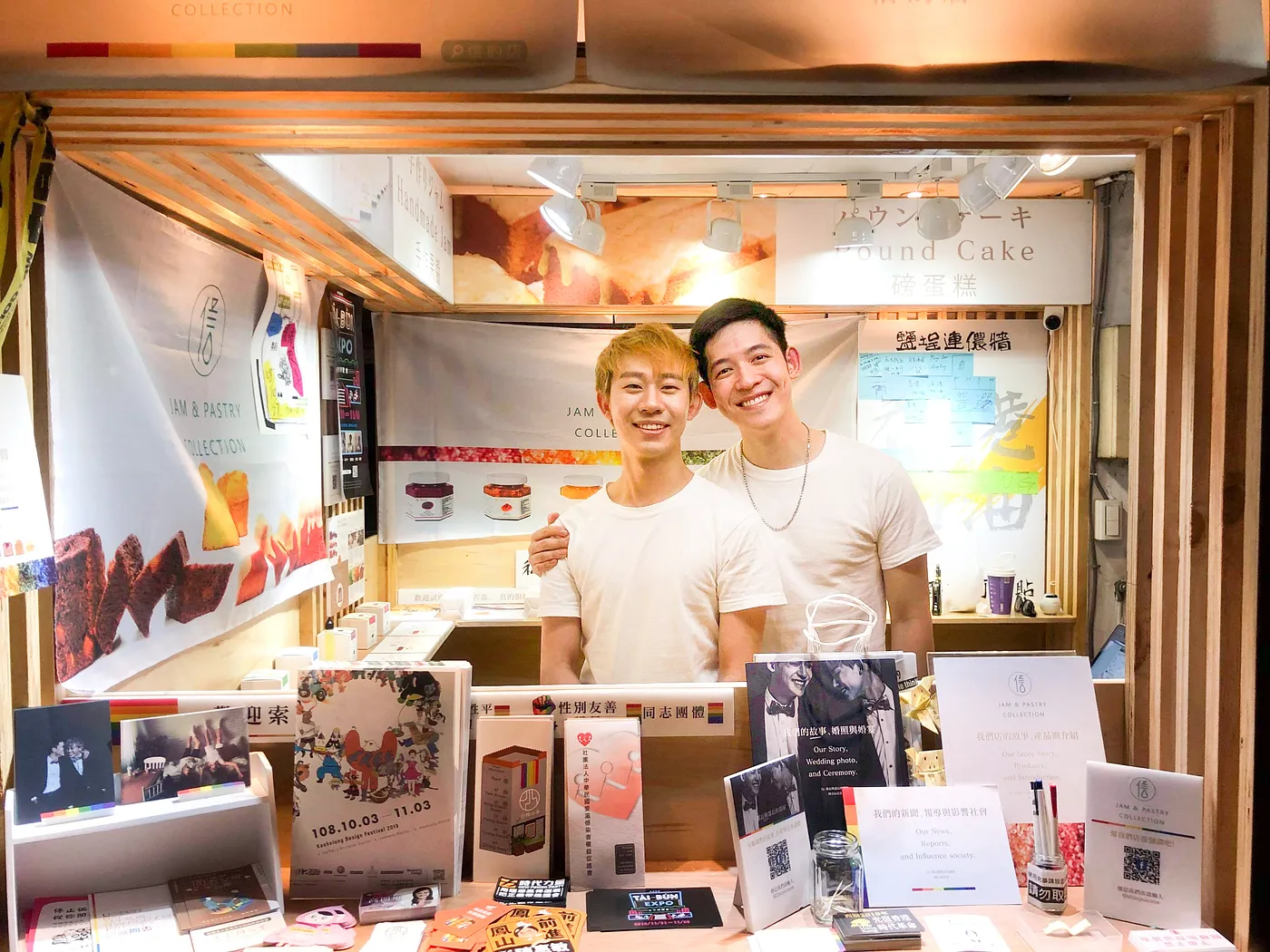 來自澳門的阿古從小家境艱困、理解市場百態,他用堅定的決心說服信奇留在鹽一市場,以議題宣導為主、甜點實驗攤位為輔來經營。過了半年,市場的營收佔了所有收入的一半以上,最大的散客族群則來自於這裡的長輩!這給了文昕極大的鼓舞,因為最重要的不是要長輩們全然理解,而是彼此跨出溝通的那一步,市集就成功了,「後來她們很習慣這倆大男孩的存在,還會對阿古說,你尪勒?(「你老公」台語)」之後,文昕也力挺擔任2020年第11屆高雄同志大遊行總召阿古,以籌備會一員的身份協助活動在鹽埕舉辦,「我們把喜歡的事情辦在喜歡的地方,一個是我在做的工作、一個是我關注的議題。」